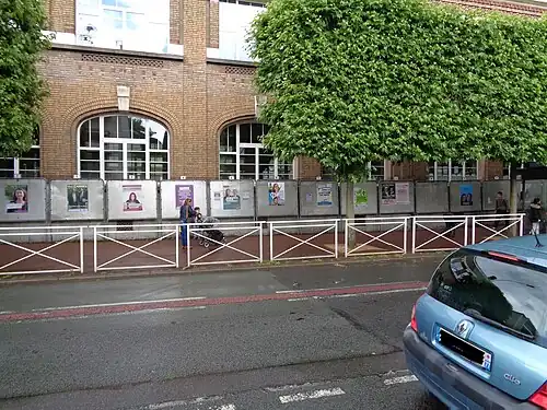 Le Pen herself was reluctant to introduce herself as a candidate after her defeat in the presidential election, with initial hopes of 80 to 100 deputies within the FN revised sharply downwards to 15 target constituencies.[51] On 18 May, she confirmed that she would once again run in Pas-de-Calais's 11th constituency (where she lost by a hundred votes to Philippe Kemel in 2012), which includes Hénin-Beaumont (whose mayor is Steeve Briois of the FN) and where she received 58.2% of votes in the second round of the presidential election.[52] Following the announcement, her father Jean-Marie Le Pen decided not to present a candidate under the banner of the "Union of Patriots", an alliance of far-right movements presenting 200 candidates across France, in the constituency.[53]