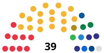 All 39 seats in the Sámi Parliament 20 seats needed for a majority | |||||||||||||||||||||||||||||||||||||||||||||||||||||||||||||||||||||||||||||||||