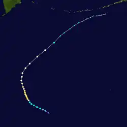 | Peak intensity | 100 km/h (65 mph) (10-min); 985 hPa (mbar) |