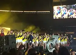 ![]() Players celebrating on stage after winning the 2017 AFL Grand Final | |