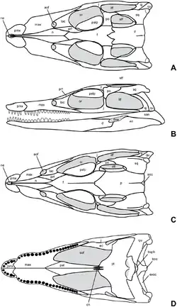 - A study on the changes in morphological diversity of the skulls of extinct and extant crocodyliforms through time is published by Wilberg (2017).[10]