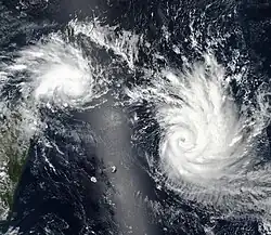 Tropical Cyclones Cilida (left) and Kenanga (right) on 20 December 2018