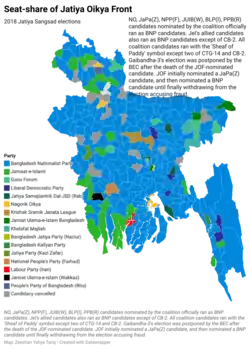 General elections were held in Bangladesh on 30 December 2018 to elect 300 directly-elected members of the Jatiya Sangsad.[1] The result was another landslide victory for the Awami League-led Grand Alliance led by Sheikh Hasina.[2] The elections were marred by violence, and were widely considered by opposition politicians and the international community to be rigged.[3][4]