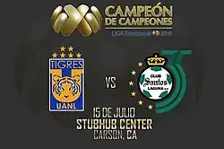 The 2018 Campeón de Campeones was the 46th edition of the Campeón de Campeones, an annual football super cup match, and the 45th held in the professional era of Mexican football. It took place on 15 July 2018 between Tigres UANL, the Apertura 2017 champion, and Santos Laguna, the Clausura 2018 champion, at the StubHub Center in Carson, California, hosting for the third consecutive year.[1] Like previous editions, the Campeón de Campeones was contested at a neutral venue in the United States and paired with the 2018 Supercopa MX.[2]