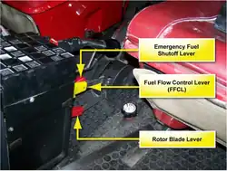 According to NTSB safety recommendations A-10-129 and -130, issued on October 20, 2010, the design of the emergency fuel shutoff lever in the Eurocopter AS350 cockpit "allows for easy access to and inadvertent movement of (the lever), which could cause a serious or catastrophic accident if the movement occurs at a critical point during flight or on the ground."[23][24] Airbus (then Eurocopter) had previously reviewed the design of the fuel cutoff lever prior to the safety recommendation and developed a new design, but the FAA did not require a retrofit of the new design.[23]