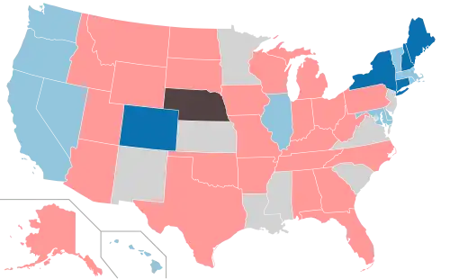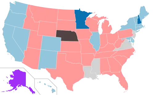 - ^ Counts seats in the officially nonpartisan Nebraska legislature towards the party that endorsed each candidate