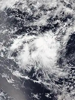 On 20 December, a tropical disturbance that was being monitored by Météo-France's tropical cyclone warning centre in Réunion crossed into the Australian region from the South-West Indian Ocean basin.[95] Upon entering the region, the system was classified as a tropical low by the Bureau of Meteorology (BOM), and had an estimated central atmospheric pressure of 1006 hPa (29.71 inHg).[96] Initially situated approximately 825 km (513 mi) west-northwest of the Cocos Islands, the system was located in an environment that was generally unfavourable for intensification, with moderate to strong vertical wind shear offsetting otherwise conducive upper-level outflow and warm sea surface temperatures of 28–29 °C (82–84 °F).[97][96] It again exited the basin on 28 December without any significant intensification where RSMC Réunion reclassified the system as Tropical Depression 05.[98]