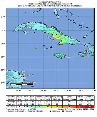 8. ^ a b Rice, Doyle (28 January 2020). "Powerful 7.7 earthquake strikes in Caribbean between Cuba and Jamaica". USA Today. Retrieved 28 January 2020.