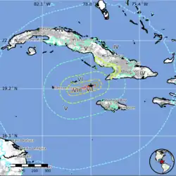 Tremors were felt on the southern coast of the island. A spokesman for Guantanamo Bay Naval Base stated that there were no reports of damage or injuries.[32] Granma Province was affected by the strongest shaking, being closest to the epicenter. A survey carried out by the National Center for Seismological Research, found that one house had completely collapsed and another 300 showed some damage. The houses affected were all ones that were not in good condition before the earthquake. Damage was also reported from some schools and daycare centers.[33]