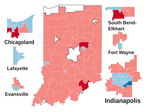 Results by winning party vote share Results: Republican gain Democratic gain Republican hold Democratic hold Vote share: 50–60% 60–70% 70–80% >90% 50–60% 60–70% 70–80% 80–90% >90% |