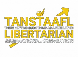 In early 2019, the Libertarian Party held a contest, allowing members to decide the 2020 convention theme, charging $5 a vote.[27] On April 11, it was announced that the winning theme was "TANSTAAFL",[28] an acronym for "There Ain't No Such Thing As a Free Lunch", a libertarian economic concept popularized by American writer Robert Heinlein and subsequently Chicagoan school economist Milton Friedman.[29] The phrase was also embodied in the Libertarian Party's first logo, adopted in 1972, in an image known as the "Libersign".[30]