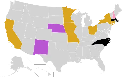 7 (CA, CT, IA, MN, MO, NY, OH) |