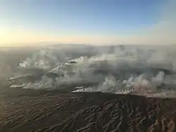 Causes of the fire were mostly due to human activity, dry vegetation, high winds, and the lack of rain obtained during the monsoon season between July and September. Due to these causes, 2020 became Arizona's worst fire season. Most the acres burned in Maricopa County was caused by the Bush Fire.[72] Over 1,000 people had to be evacuated from their properties due to the wildfires burning in the county. 200,000+ acres were scorched in the area and left noticeable burn scars around northern Maricopa County. Fortunately, no deaths or injuries were announced. Approximately 44 structures were destroyed and the cost of the wildfires reached well over $17 million (2020 USD).[73]