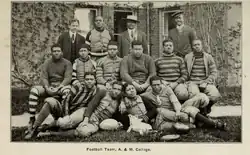 In 1901, the team played its first game, losing to Livingstone College. The team played only one game during the 1901 season and did not field another team until 1906.[2] In the program's early years, the team would sporadically field teams, having periods between 1907 and 1911; 1913; and 1917 where there was no team. Due to the outbreak of World War I, the school did not field a team, but resumed play once again in 1919 competing against neighboring Bennett College.[3] It wasn't until 1923, that A&T's first coach of record, L.P. Byarm, would come along to lead the team.[4]
