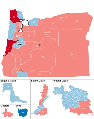 The Democratic Party kept their majority.[1] The Oregon Legislature does not have term limits.