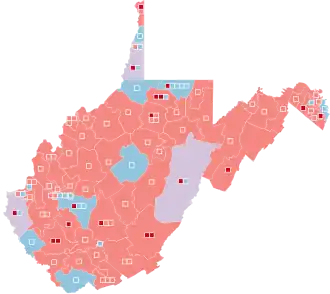 The Republican Party, cementing their hold over West Virginia state politics, made a gain of 18 seats in the House of Delegates, holding over three-fourths of the chamber's seats and achieving supermajority status.[2] The scope of the Republicans' gains, which swept many traditionally Democratic areas, was unexpected on both sides of the aisle, with both Democrats and Republicans expressing surprise at the results.[3] The election, further eroding the Democrats' caucus in the House, is a part of a decades-long shift in power statewide from Democrats to Republicans.