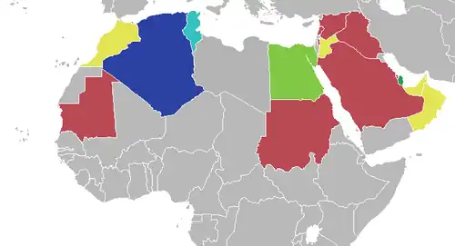 - ^ South Sudan, which is not part of the Arab world, also participated in the qualifying stage.
