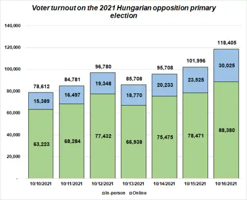 - ^ "Átlépte az előválasztáson résztvevők száma a 200 ezret" (in Hungarian). National Primary Election Office.