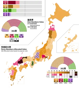 | Diet members | Party members | Total points | Diet members | Prefectural chapters | Total points | ||||||||||||