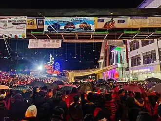 The Eastern Nagaland People’s Organisation (ENPO), which represents six tribes, withdrew from the ongoing annual Hornbill Festival.[11] The Nagas hoisted black flags on all its morungs at the festival while the Konyaks decided to have its cultural troupe abstain from participating at the festival. This was followed by the other Naga cultural troupes also abstaining on 5 December. Two minutes of silence were also observed at the venue on the same day.[23][24] Later on the evening of 5 December, the people of Kohima observed a power blackout for 30 minutes to mourn the death of the civilians.[23][24] Candlelight marches were organised in Kohima, Dimapur and other towns on the same day.[11] A six-hour shutdown was also called by the Naga Students' Federation.[25][26] On 7 December, the Government of Nagaland announced that it would suspend all activities at the Hornbill Festival.[27]