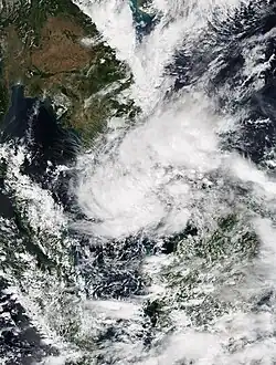 On June 10, the JTWC started to monitor an area of low-pressure in the South China Sea, approximately 518 km (322 mi) to the south of Hong Kong, with the agency classifying the system as a monsoon depression.[85] Tracking west-northwestward, the storm was located in a favorable environment for further development, with warm sea surface temperatures and low wind shear.[86] At 00:00 UTC on June 11, the JMA upgraded the system into a tropical depression.[87] Six hours later, the JTWC issued a TCFA for the system as it began to show characteristics of a monsoon depression.[88] By 18:00 UTC, the JMA upgraded the system to a tropical storm, assigning it the name Koguma.[87] On June 12 at 00:00 UTC, the JTWC upgraded Koguma to a tropical depression, assigning it the designation 05W.[89] Later that day, the JTWC also upgraded Koguma to a tropical storm.[89] By June 12, it had made landfall southeast of Hanoi,[90] and dissipated the next day.[87]