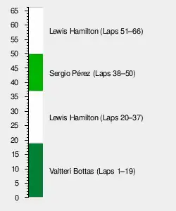 The race started at 15:00 local time on Sunday 2 May.[6] Valtteri Bottas held the lead into turn 1 ahead of Max Verstappen, Lewis Hamilton, Carlos Sainz Jr. and Sergio Pérez. Kimi Räikkönen made contact with teammate Antonio Giovinazzi on the main straight at the end of lap 1 bringing out the safety car. Räikkönen's race was over but Giovinazzi managed to continue without damage.