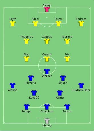 - ^ a b c d e f "Full Time Report Final – Chelsea v Villarreal" (PDF). UEFA. Union of European Football Associations. 11 August 2021. Retrieved 11 August 2021.