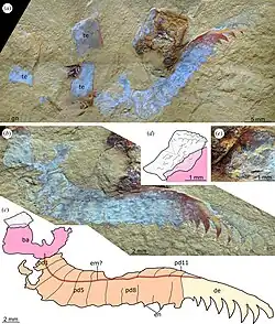 - ^ Liu, Y.; Edgecombe, G. D.; Schmidt, M.; Bond, A. D.; Melzer, R. R.; Zhai, D.; Mai, H.; Zhang, M.; Hou, X. (2021). "Exites in Cambrian arthropods and homology of arthropod limb branches". Nature Communications. 12 (1) 4619. Bibcode:2021NatCo..12.4619L. doi:10.1038/s41467-021-24918-8. PMC 8324779. PMID 34330912.