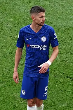 On transfer deadline day, 31 January, the Gunners announced that 31-year-old Italian midfielder Jorginho had joined the club from Premier League side Chelsea and would wear the number 20 shirt.[273][274] Jorginho had made 143 Premier League appearances for Chelsea, winning the UEFA Europa League, UEFA Champions League, UEFA Super Cup and FIFA Club World Cup during his time at the club. Capped 46 times, he was part of the Italy squad which won UEFA Euro 2020.[273][274] In 2021, he was named UEFA Men's Player of the Year and placed third in the Ballon d'Or.[275][276]