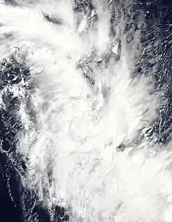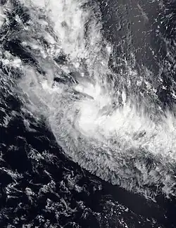 On January 20, a tropical low entered the basin from the Australian region, where it was immediately designated as Tropical Depression 06F by the FMS.[55] Later that day, the JTWC would recognize the system as a tropical cyclone, designating it as Tropical Cyclone 10P, although the system was becoming exposed due to a dry air infiltration.[56] With the system becoming fully exposed due to increasing wind shear and large amounts of dry air, the JTWC would issue their final advisory on 06F the next day.[57] The FMS continued to issue advisories on 06F as it continued east-southeast,[58] before it turned south-southwest and degenerated into a low pressure area on January 22.[59] The remnants of the system impacted New Zealand on January 27, causing severe flooding which killed 4 people and resulted in US$1.2 billion in damages.[60]