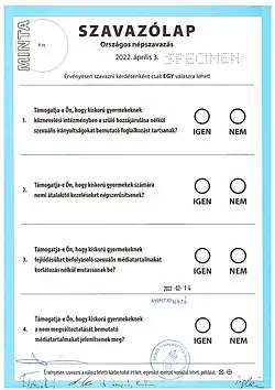 - ^ "Országos népszavazás" [National referendum] (in Hungarian). 2 May 2022. Archived from the original on 21 August 2022.
