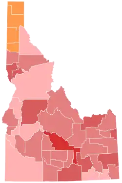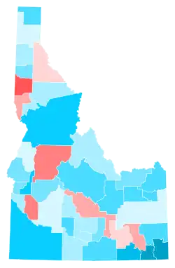 The statewide primary was held on May 17; Little defeated incumbent lieutenant governor Janice McGeachin in the Republican primary, while Stephen Heidt won the Democratic primary.[1] Little convincingly won the general election, but there was a relatively strong performance by far-right independent candidate Ammon Bundy, who finished roughly three points behind Heidt, and ahead of Heidt in 34 of Idaho's 44 counties.