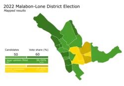 Local elections was held in Malabon on May 9, 2022 within the Philippine general election . The voters will elect for the elective local posts in the city: the mayor, vice mayor, the two Congressmen, and the twelve councilors for the city's two Sangguniang Panglungsod districts, six for each district.