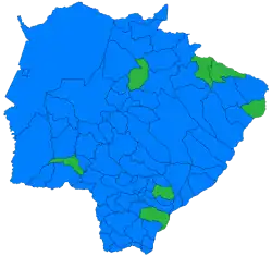 The 2022 Mato Grosso do Sul state election took place in the state of Mato Grosso do Sul, Brazil between 2 October 2022 (first round) and 30 October 2022 (second round). Voters elected a governor, vice governor, a senator, 8 representatives for the Chamber of Deputies of Brazil (federal deputies) and 24 Legislative Assembly members (state deputies).[1] The incumbent governor at the time, Reinaldo Azambuja, wasn't allowed to run for reelection for a third consecutive time due to term limits established by the Federal Constitution of Brazil (art. 14, paragraph 5).[2]