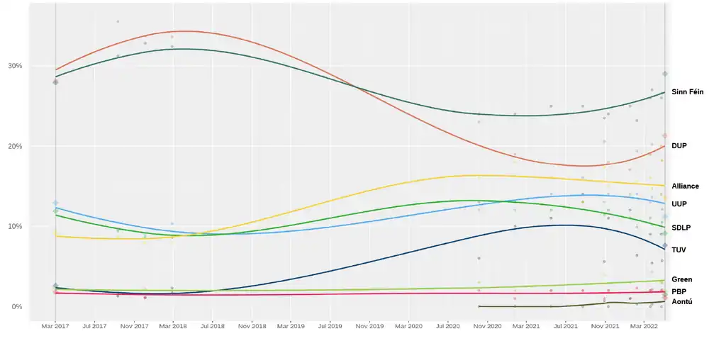 83. ^ Sproule, Luke; McCormack, Jayne (13 April 2022). "NI election 2022: 41 poster incidents reported to police". BBC News. Retrieved 26 April 2022.