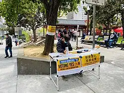 In the summer of 2021, there were two separate campaigns that sought to gather the necessary signatures in order to force a recall election against Boudin. The first campaign was spearheaded by former mayoral candidate Richie Greenberg, a member of the Republican Party, but narrowly fell short of the 51,325 signatures needed before the August 11 deadline.[28] The second campaign was led by Mary Jung and Andrea Shorter, both members of the Democratic Party, and had a deadline of October 25 to collect the same number of signatures.[29] Jung is a former chair of the San Francisco Democratic County Central Committee.[30] The second campaign submitted 83,484 signatures to the Board of Elections, which announced on November 9 that via a review of a representative 5% sample of signatures they determined that the number of valid signatures exceeded the required 51,325 and thus that a recall election would take place on June 7, 2022.[1]