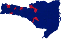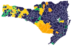 ![]() Candidate with the most votes per municipality in the 2nd round (295): Jorginho Mello (280 municipalities) Décio Lima (15 municipalities) | |||||||||||||||||||||||||||||||||||||||||||||||||||||||||||||||||||||||||||||||||||||||||||