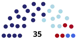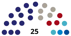 In the municipality of Aranđelovac, there were 36,847 eligible citizens that were able to vote in the local election.[28][31][32] The local City Election Commission reported that the turnout was 63%.[32] The Serbian Progressive Party won 19 seats, while the SPS–JS coalition won seven. The Serbian Party Oathkeepers won 5 seats, while the United for the Victory of Serbia coalition won four, and the Dveri–ZS coalition won three seats. Two seats were won by POKS, while the Enough is Enough party won one.[32][33]