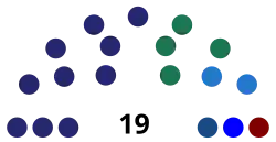 In the municipality of Bor, there were 40,661 eligible citizens that were able to vote in the local election.[89][90] The local City Election Commission stated that the turnout was 61.2%.[90] The Serbian Progressive Party won 15 seats, while the coalition led by the People's Party won 6 seats. The Socialist Party of Serbia and Vlach Party "Bridge" both won four seats, while the coalition led by the Party of Freedom and Justice won three seats. The Dveri–POKS coalition, Fighters for Bor, and Loud for the Youth each won one seat.[91]