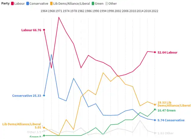 In the previous election in 2018, the Labour Party maintained its control of the council, winning 49 out of the 63 seats with the Liberal Democrats forming the council opposition with the remaining 14 seats.