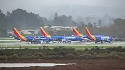 ![]() Southwest Airlines aircraft parked at Santa Barbara Airport during the mass cancellation event | |