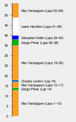 It was won by defending champion Max Verstappen, who was followed by Lewis Hamilton in second and Charles Leclerc in third. With Verstappen taking victory and teammate Sergio Pérez finishing fourth, Red Bull secured its fifth Constructors' Championship title and the first since 2013.[3]