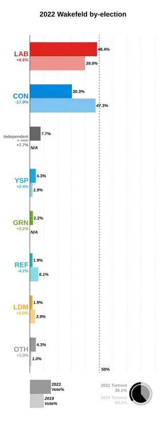 - ^ a b Airey, Tom (24 June 2022). "Wakefield by-election result: Labour defeat Tories to retake seat". BBC News. Retrieved 24 June 2022.