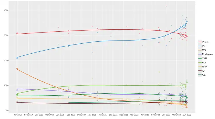 - ^ "ElectoPanel Autonómico (6M)". Electomanía (in Spanish). 6 May 2023.