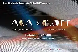 - ^ a b Jo Ah-seo (September 18, 2023). "2023 아시아콘텐츠어워즈&글로벌OTT어워즈, 20일 티켓 오픈" [2023 Asia Contents Awards & Global OTT Awards, tickets open on the 20th]. News 1 (in Korean). Naver. Retrieved September 18, 2023.