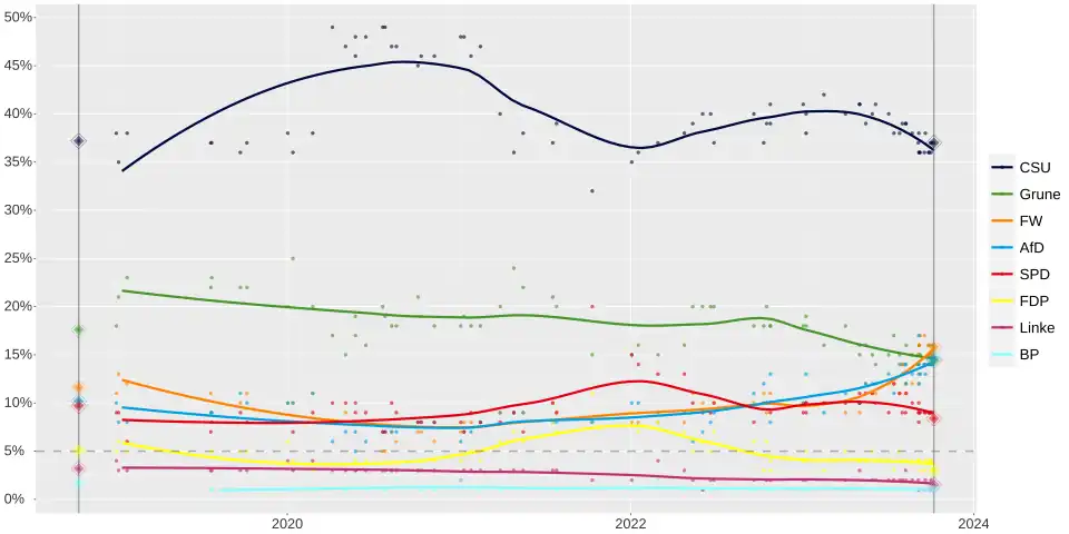 - ^ "Ergebnisse in der Grafikansicht für Gesamtbayern". Landtagswahl (in German). 2023-10-24. Retrieved 2023-11-06.