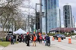 On April 7, the CRA bargaining group voted to enter a legal strike position.[21] On April 12, the national president of PSAC, Chris Aylward, announced that the Treasury Board bargaining unit had voted overwhelmingly in favour of entering into a legal strike position, thus granting the group a 60-day window to initiate a labour strike.[16] On April 19 at 12:01 a.m. ET, the strike began.[22] Approximately 100,000 of the 159,000 PSAC members left their jobs in order to picket at hundreds of locations across the country.[23] However, approximately 30,000–46,000 jobs (including approximately 8,600 Canada Border Services Agency workers who constitute PSAC's FB bargaining unit[24]) were deemed essential (i.e., they were considered necessary to the safety or security of the public or a segment of the public), meaning these workers could not participate in a strike and needed to continue to work, nor could strikers impede essential workers' access to their workplaces.[25]