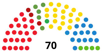 The table below shows the composition of the parliamentary groups in the Parliament at the time of dissolution.[7]