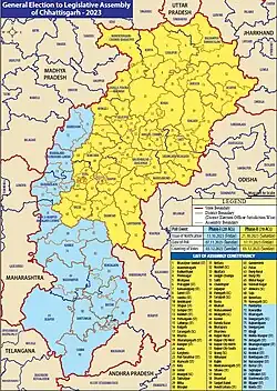 - ^ "Chhattisgarh votes in 2 phases on November 7, 17". 9 October 2023. Archived from the original on 9 October 2023. Retrieved 9 October 2023.