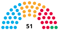 No seats changed party at the 2023 election and so the council remained under no overall control. However, immediately after the election the coalition broke up when the National Executive Committee of the Labour Party directed that the Labour group could only stay in the coalition if a Labour leader of the council was appointed, which the other parties did not agree to. At the subsequent annual council meeting on 24 May 2023 a Liberal Democrat minority administration formed instead, still led by David King. The Labour and Green groups voted in support of the minority administration forming.[3]